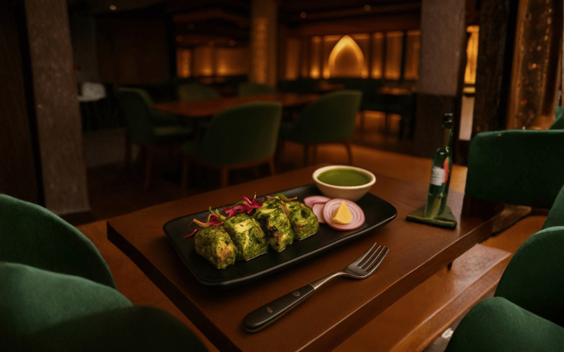 Spices flavored tender cubes of cottage cheese, green pepper and onion marinated in mint coriander paste & yoghurt, cream and baked in tandoor.