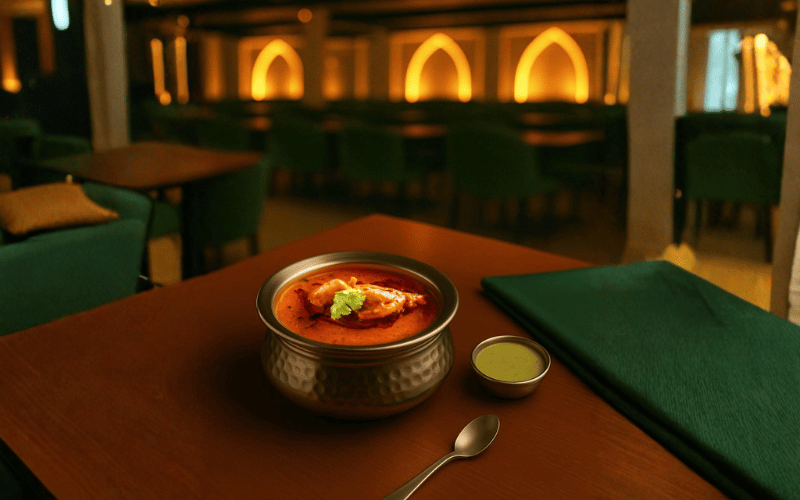 The gravy is Parantha stuffed with mutton keema with grounded spices and provide with mutton gravy.